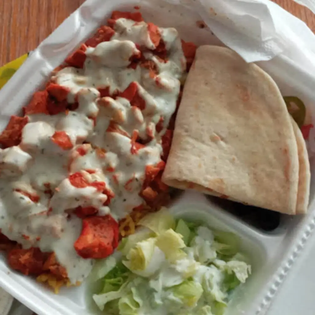 Zara Halal Food is a concept to bring fresh, healthy and delicious food to the people. We make our food fresh right in front of our customers to make sure they are satisfied and see what they are eating. We use delicious yellow basmati rice and make our own famous white and hot sauce every day to ensure the best quality.